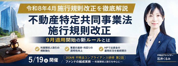 こんにちは、不特法アドバイザーの石井くるみです 来年2026年のイベント情報のお知らせです。 このたび、国土交通省主催のセミナー 「不動産特定共同事業を中心とする不動産証券化手法に関する実践セミナー」 に登壇することになりました。 「不動産特定共同事業」は、 ・使われていない不動産を活かしたい ・地域で新しい収益の仕組みをつくりたい